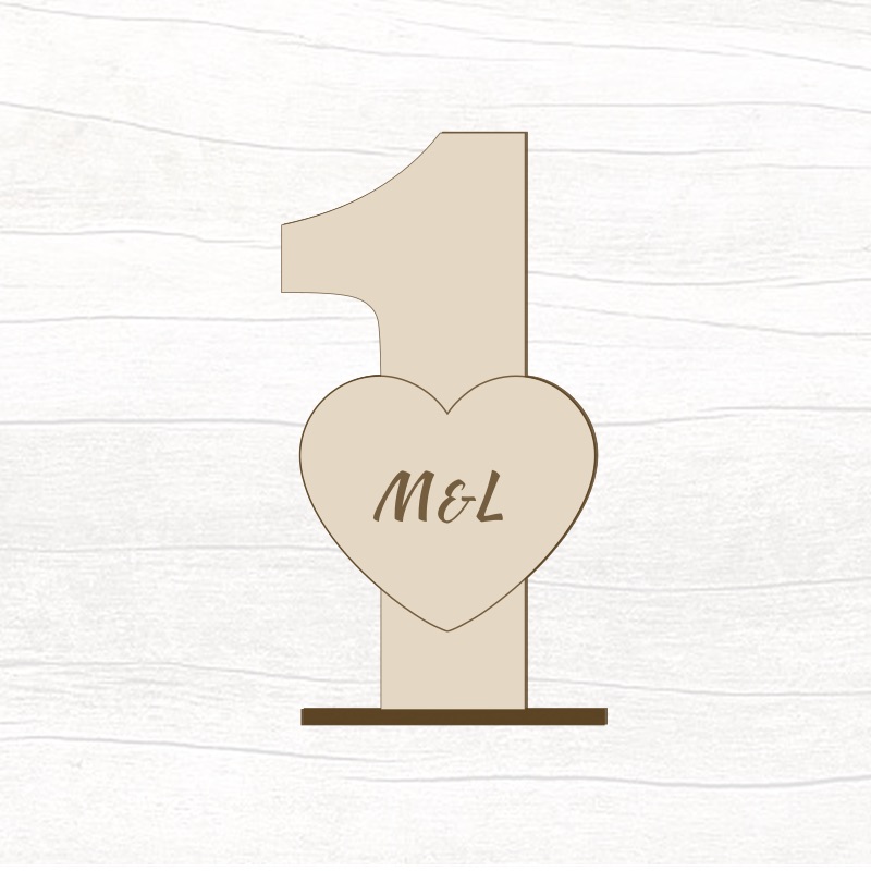 - Dřevěná čísla na stůl s iniciály