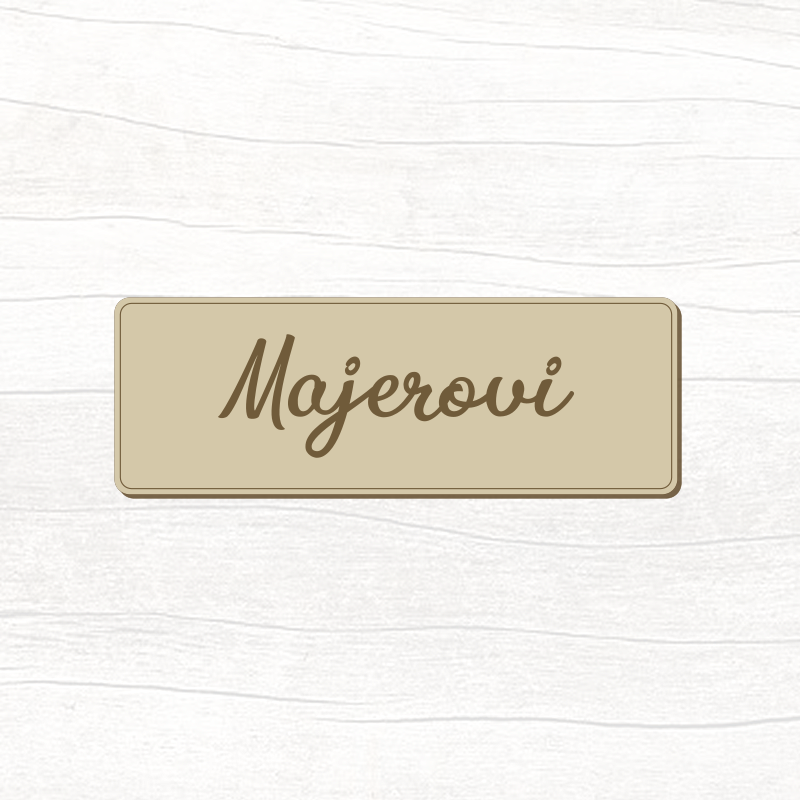 Dřevěná jmenovka na dveře s vygravírovaným jménem.