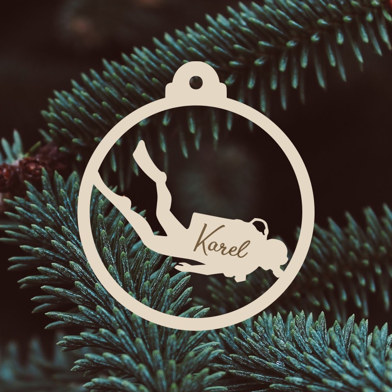 Dřevěná vánoční ozdoba na stromeček s motivem potapěče.