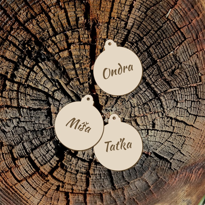- Dřevěné jmenovky - baňky