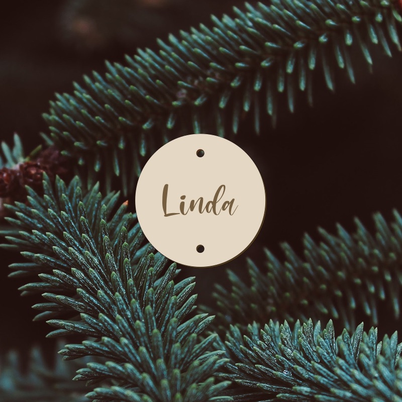 Dřevěné jmenovky na dárky se dvěma otvory na provlečení.