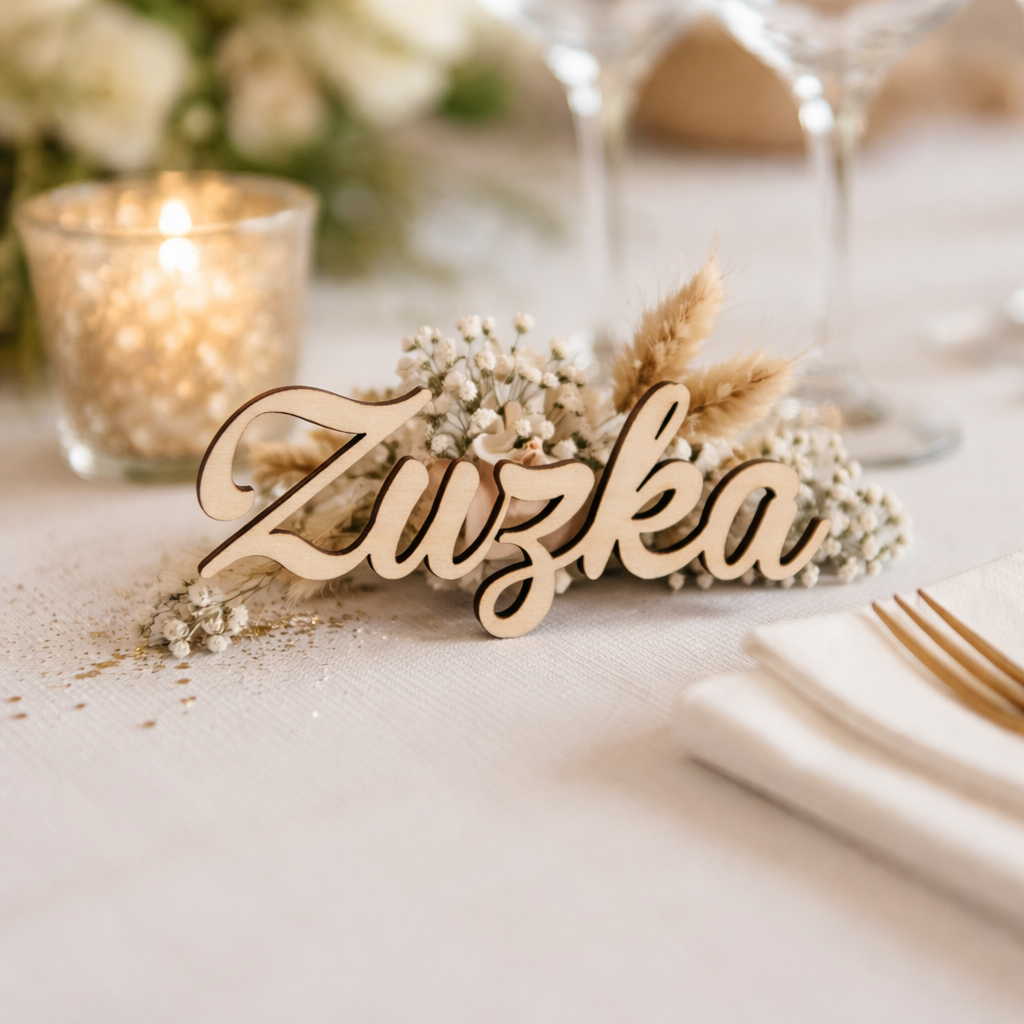 Hlavní předností je jejich trvanlivost a autenticita. Na rozdíl od papírových kartiček, které se snadno pomačkají nebo namočí, dřevo si zachovává svůj tvar i vzhled po celý večer i dlouho po něm. Získáte tak dekoraci, která nepůsobí jen jako informativní cedulka, ale jako skutečný designový prvek, který pozvedne úroveň stolování.
