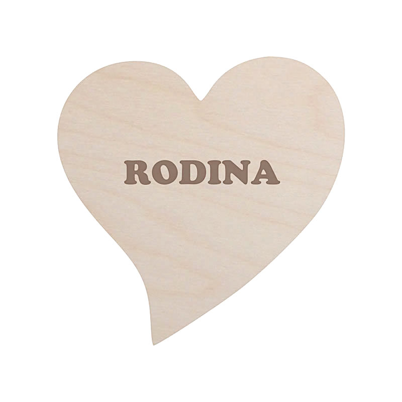 Dřevěné dekorativní srdce s vygravírovaným slovem RODINA.