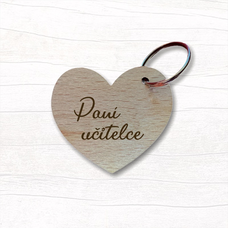 Dřevěný přívěsek na klíče z bukového dřeva pro paní učitelku