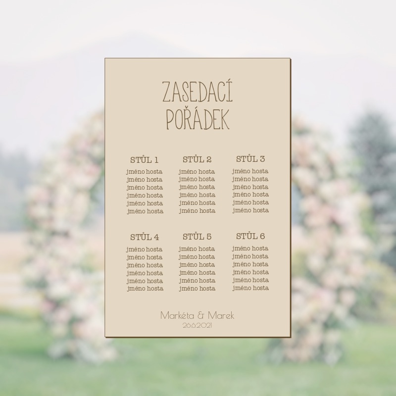 - Svatební tabule - Zasedací pořádek