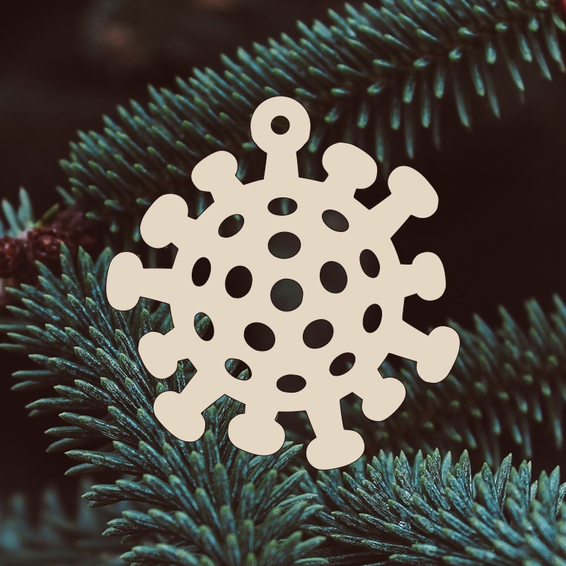 Dřevěná vánoční ozdoba na stromeček v motivu Covid-19