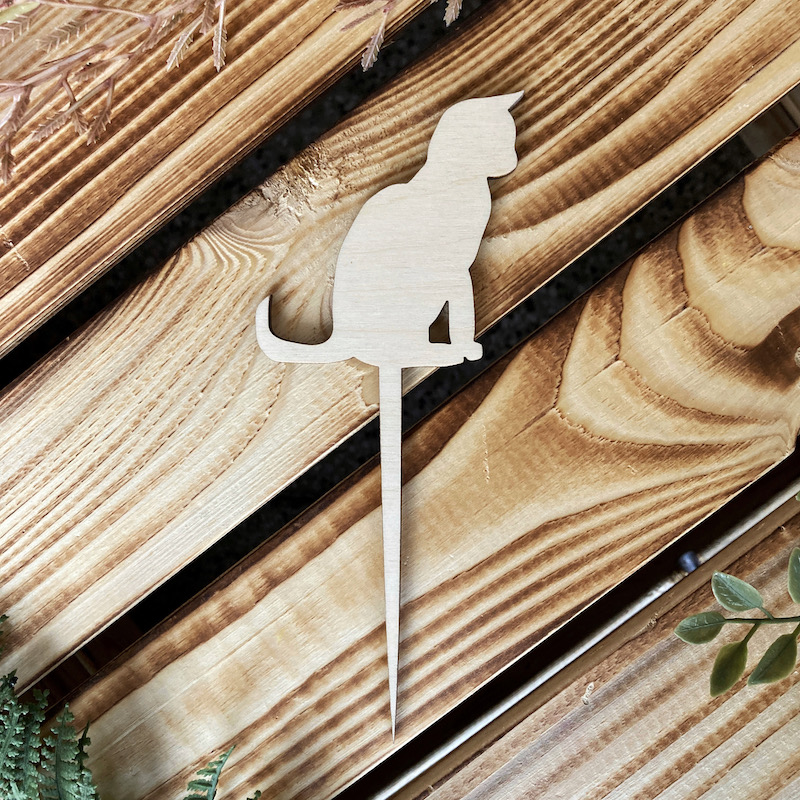 Ozdobný dřevěný zápich do dortu s motivem kočky.