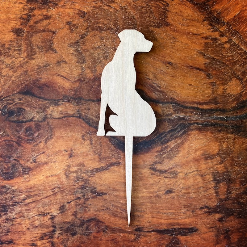 Ozdobný dřevěný zápich do dortu s motivem pejska.