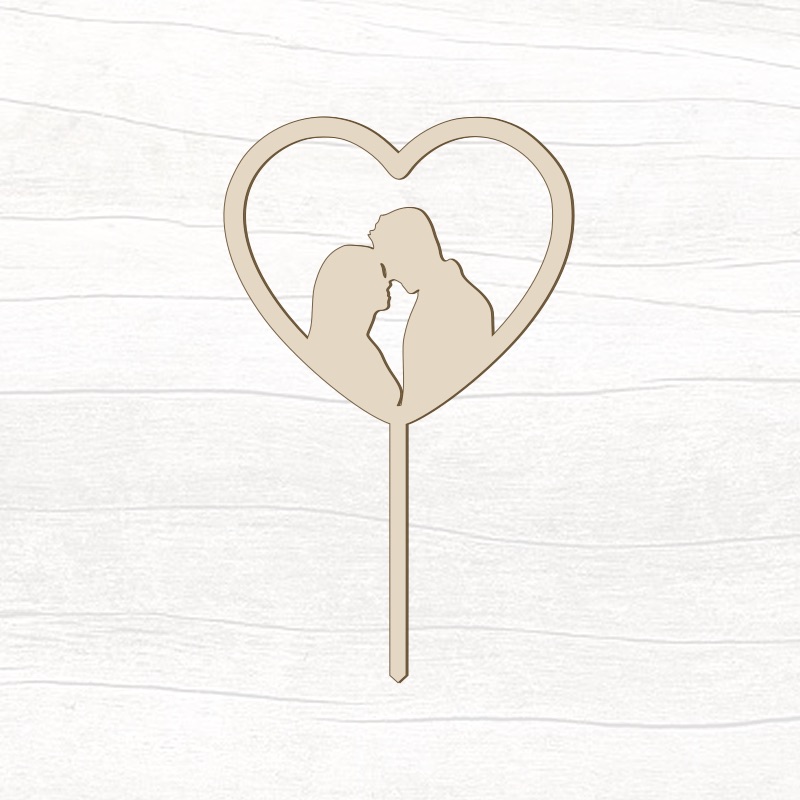 Ozdobný dřevěný zápich do dortu s motivem s motivem srdce, díky kterému i z obyčejného dortu vytvoříte dort jedinečný, který bude každý obdivovat.