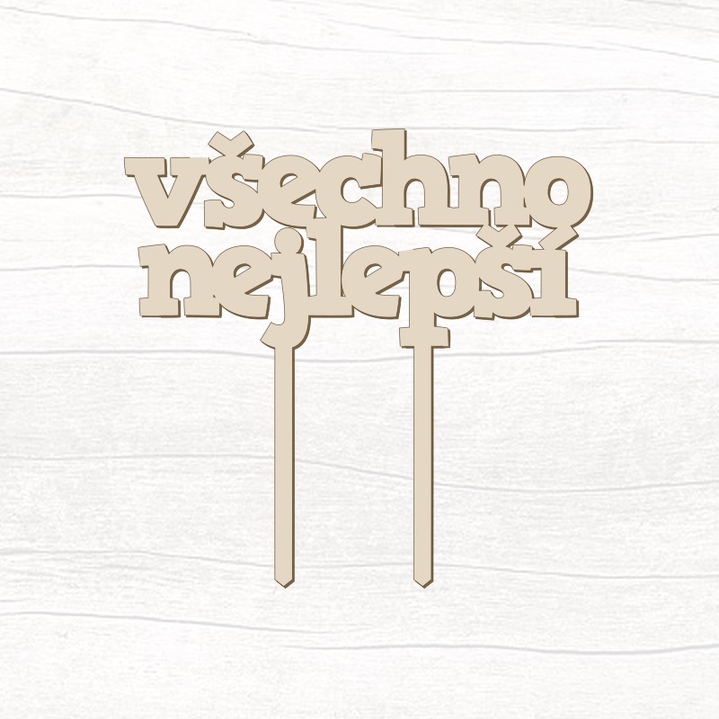 Ozdobný dřevěný zápich do dortu s nápisem všechno nejlepší, díky kterému i z obyčejného dortu vytvoříte dort jedinečný, který bude každý obdivovat.