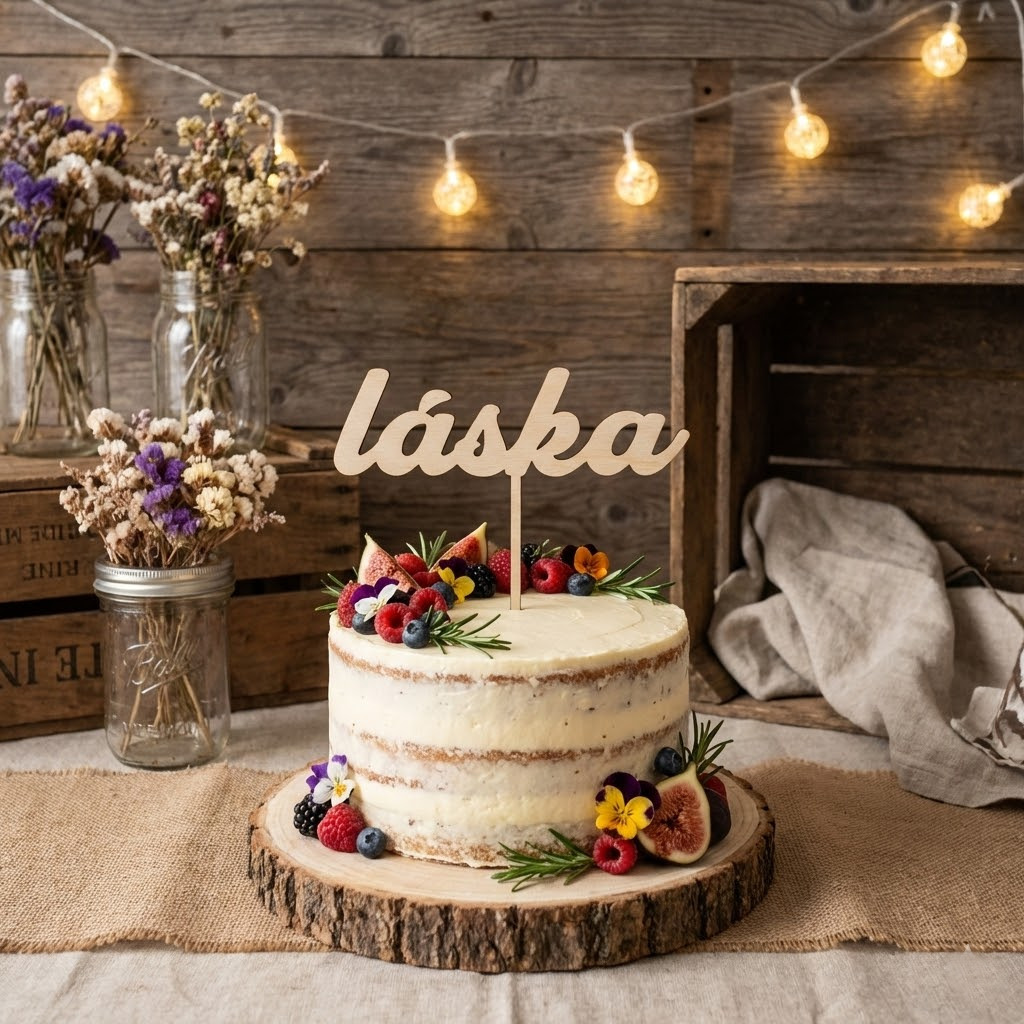 Jemný dřevěný zápich s nápisem „láska“ dodá dortu osobní a slavnostní vzhled během pár vteřin. Oceníte přírodní styl, který se hodí k rustikální, boho i minimalistické výzdobě. Skvěle doladí fotky i celkovou atmosféru oslavy.