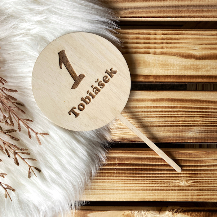 Dřevěný zápich do dortu s narozeninovým motivem, díky kterému i z obyčejného dortu vytvoříte dort jedinečný, který bude každý obdivovat.  Požadované jméno a rok nám prosím napište do poznámky k objednávce.   Můžete si vybrat ze tří velikostí (průměr kruhu): 5, 10, nebo 15 cmMateriál: březová překli... celý popis