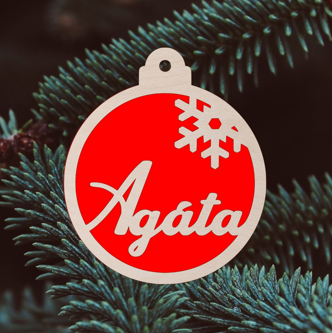 Dřevěná dvouvrstvá vánoční ozdoba na stromeček s vyřezaným jménem. Jméno na obrázku je pouze ilustrační. Ozdoby vám vyrobíme s vašimi jmény.