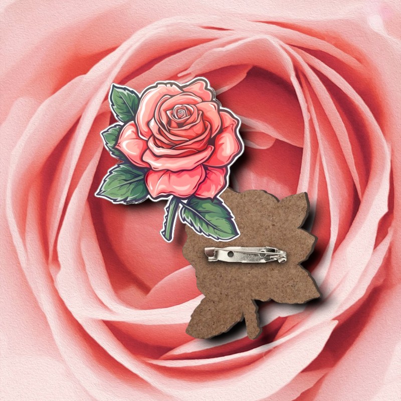 Dřevěná brož v podobě růžové růže jako stylový módní doplněk. Brože pro vás vyrábíme z lehkého, březového dřeva.  Na zadní straně brože je kovový brožový můstek s pojistkou proti otevření.