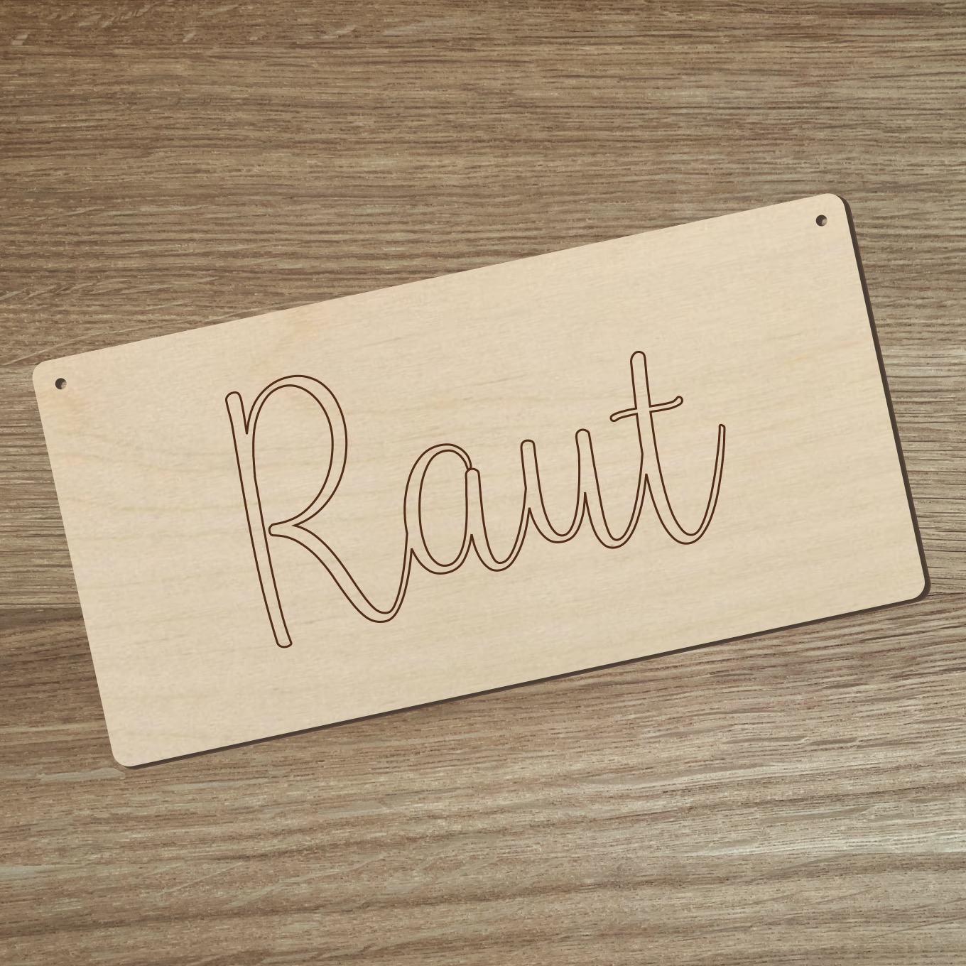Dřevěná cedulka Raut v přírodní barvě světlého dřeva.