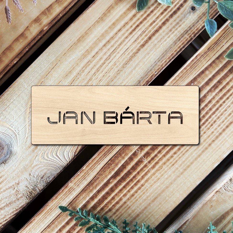 - Dřevěná jmenovka na dveře
