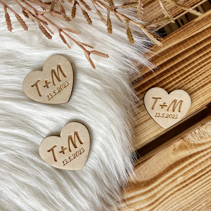 Jemný detail, který udělá velký dojem. Dřevěná srdíčka s iniciály a datem dodají vašemu dni osobní kouzlo a vytvoří hezkou památku pro vás i vaše hosty. Oceníte přírodní vzhled, čistý design a možnost personalizace.