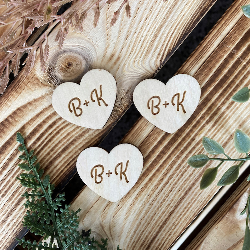 Jemný detail, který udělá velký dojem. Dřevěná srdíčka s iniciály dodají vašemu dni osobní kouzlo a vytvoří hezkou památku pro vás i vaše hosty. Oceníte přírodní vzhled, čistý design a možnost personalizace.