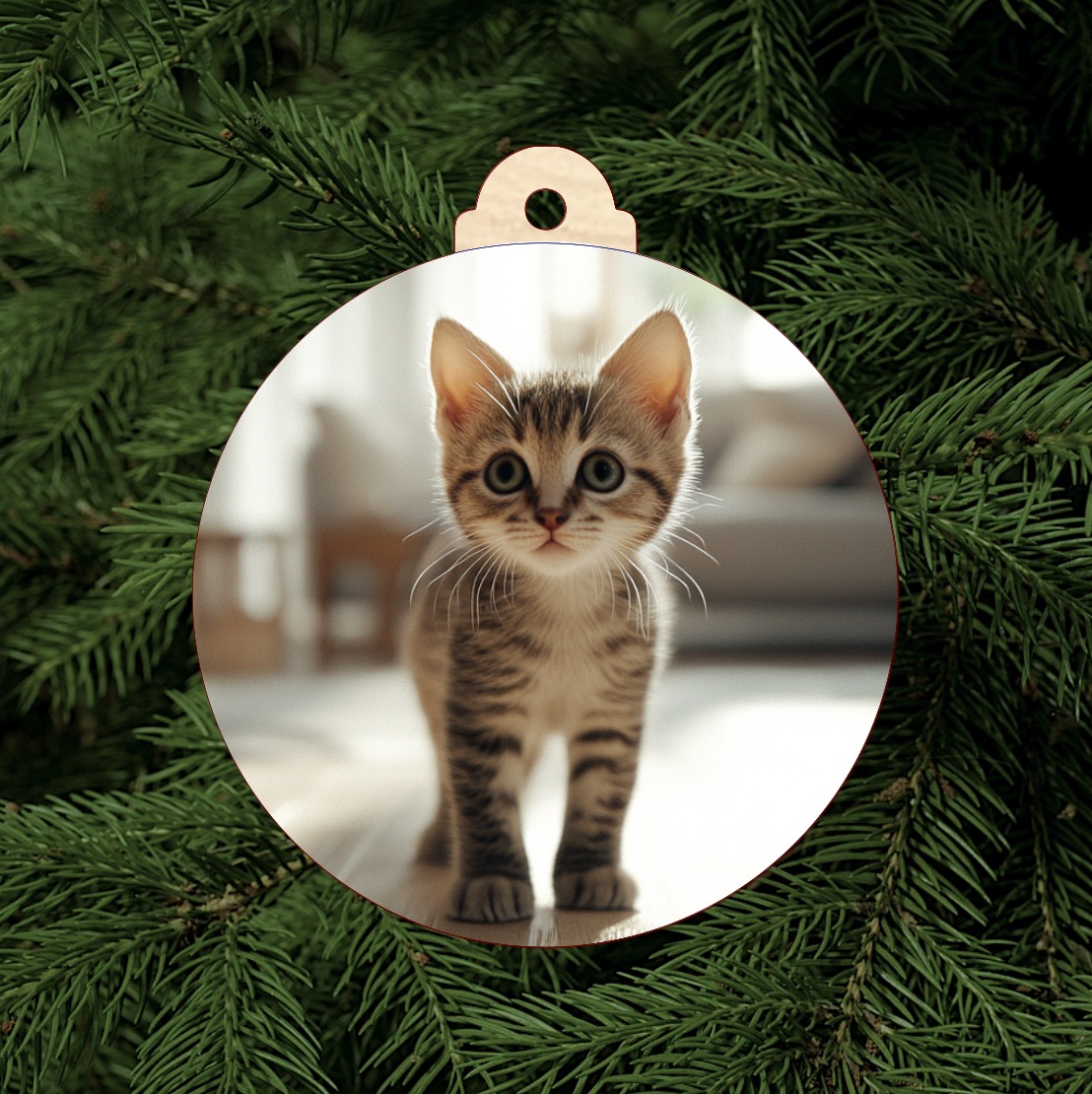- Dřevěná vánoční ozdoba s fotkou kočky