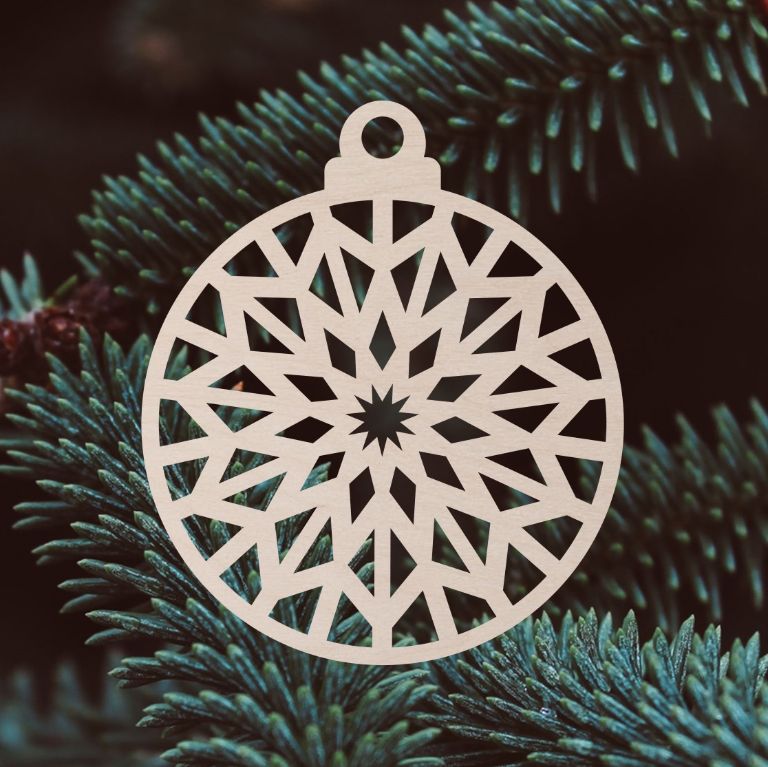 Dřevěná vánoční ozdoba s mandalou na stromeček Materiál: světlá březová překližka o síle 3 mmVelikost (průměr baňky): 7 cmBarva: přírodní světlé dřevo celý popis
