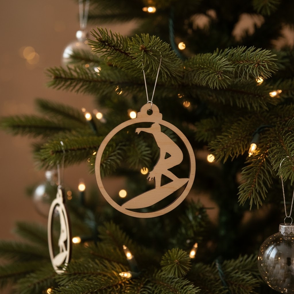 Ozdobte svůj vánoční strom touto jedinečnou dřevěnou ozdobou ve tvaru surfaře a přeneste mořský duch přímo do vašeho domova. Tato stylová dekorace je skvělým dárkem pro milovníky surfingu i pro všechny, kteří si přejí osvěžit svou vánoční výzdobu.