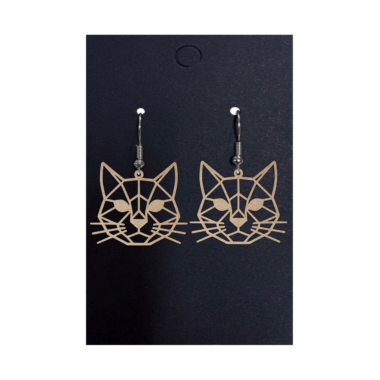 Dřevěné geometrické náušnice - Kočka