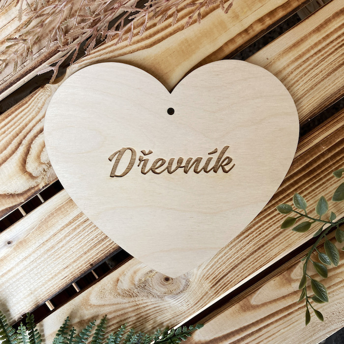 Dřevěné dekorativní srdce s vygravírovaným nápisem Dřevník.