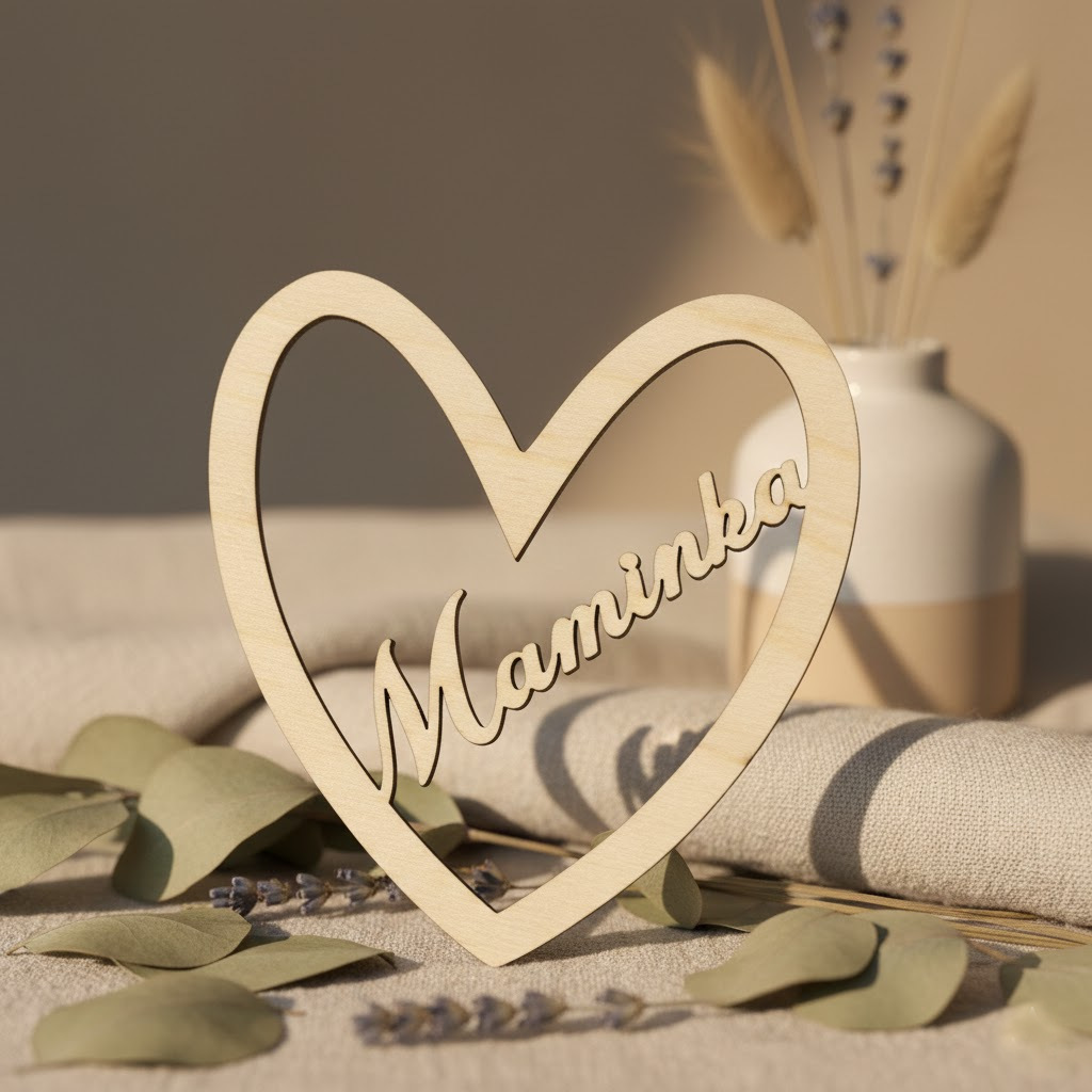 Objevte kouzlo této dřevěné dekorace ve tvaru srdce s nápisem "Maminka". Tento jedinečný kus přináší do každého domova teplo a lásku, což jej činí ideálním dárkem k narozeninám, Dni matek nebo jiným speciálním příležitostem. Vyjádřete své city originálním způsobem!