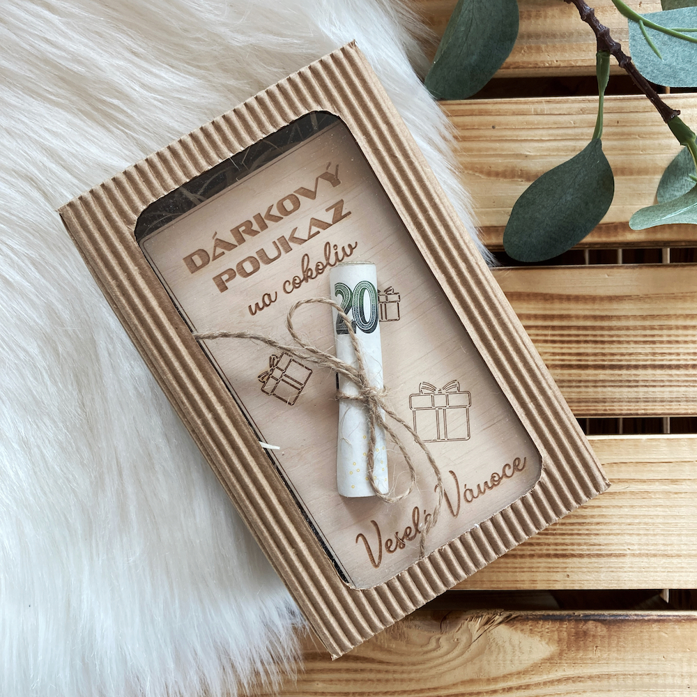 - Dřevěné vánoční přání na peníze