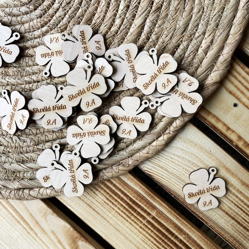Hledáte originální dárek, který přinese štěstí? Dřevěné přívěsky ve tvaru čtyřlístku s nápisem "Skvělíá třída" 🍀 jsou tím pravým! Tyto elegantní přívěsky vyráběné z kvalitního březového dřeva jsou milým talismanem, který můžete darovat nebo nosit jako osobní amulet. Připněte je na klíče, kabelku nebo batoh a mějte štěstí vždy po ruce. Udělejte radost a přineste do života trochu štěstí!
