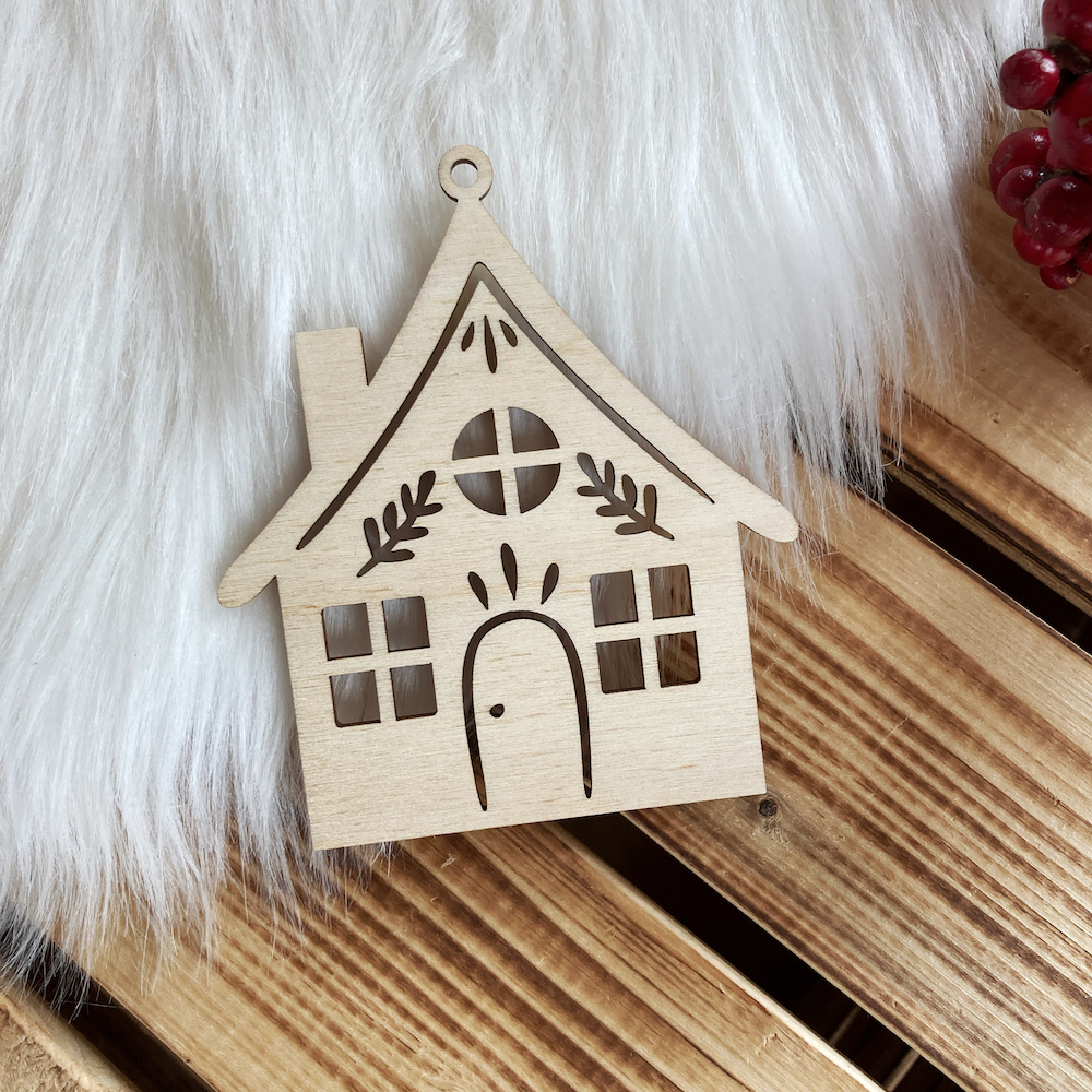 Dřevěná vánoční ozdoba na stromeček - domeček. Materiál: Světlá březová překližka o síle 3 mmVelikost 10 cmBarva: přírodní světlé dřevoOtvor na zavěšení celý popis