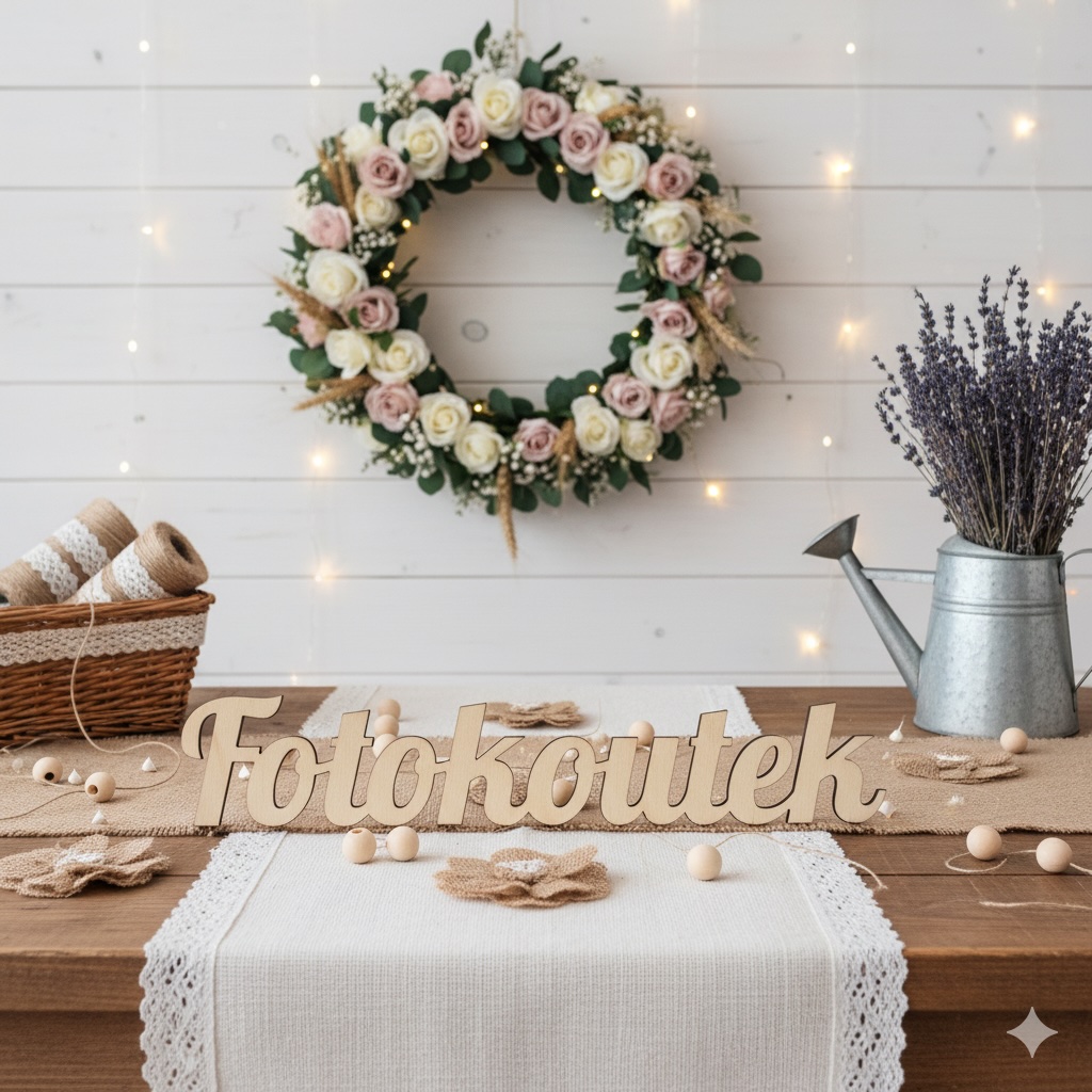 Dřevěná dekorace s nápisem „Fotokoutek“ skvěle označí místo pro focení na vaší svatbě nebo oslavě. Moderní ručně vyráběný nápis v přírodním designu přispěje k útulné atmosféře celé akce a pomůže hostům snadno najít místo pro pořízení vzpomínkových fotografií.