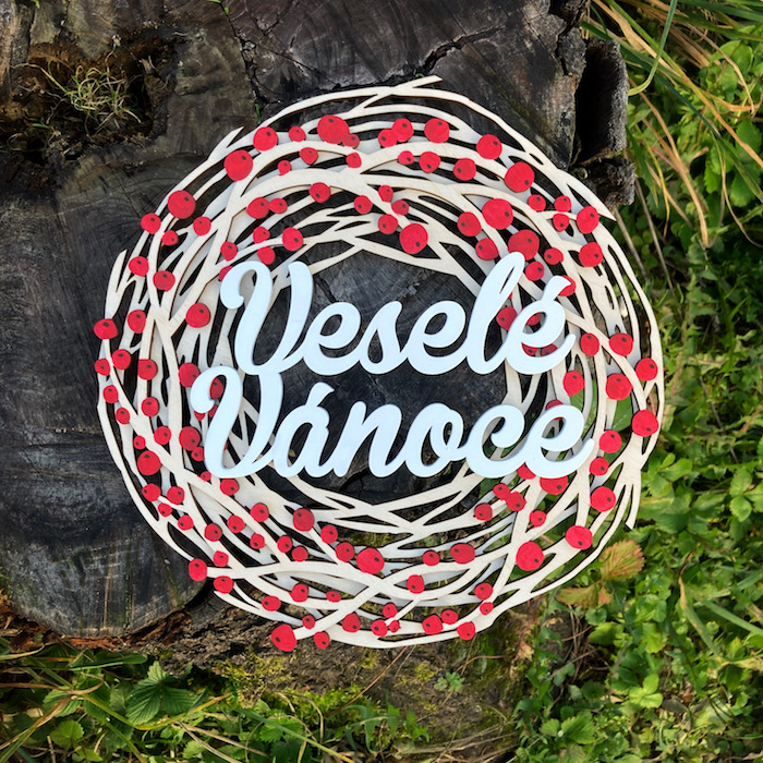 - Dřevěný vánoční věnec (Veselé Vánoce)