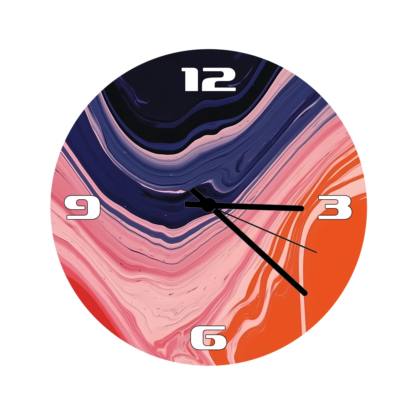 Dřevěné nástěnné hodiny s abstraktním motivem. Hodiny o průměru 29 cm jsou osazeny strojkem s tichým chodem.