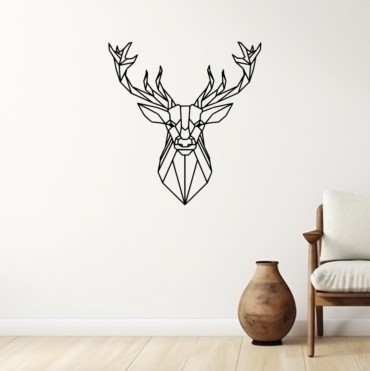 Dřevěná dekorace na stěnu - geometrická hlava jelena.