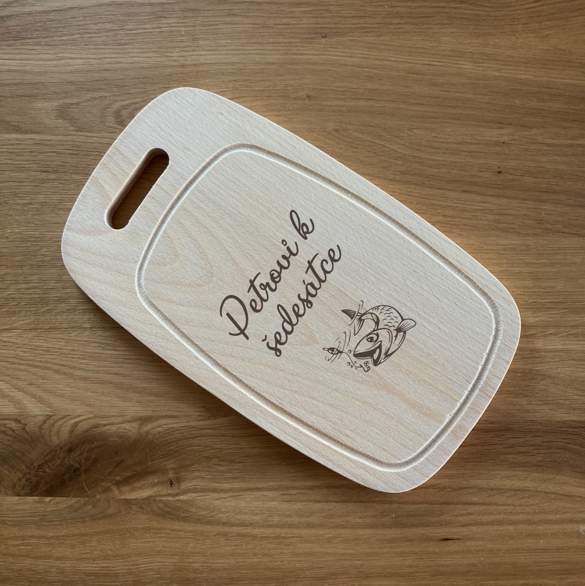 Kuchyňské prkénko z bukového dřeva s vygravírovaným motivem.