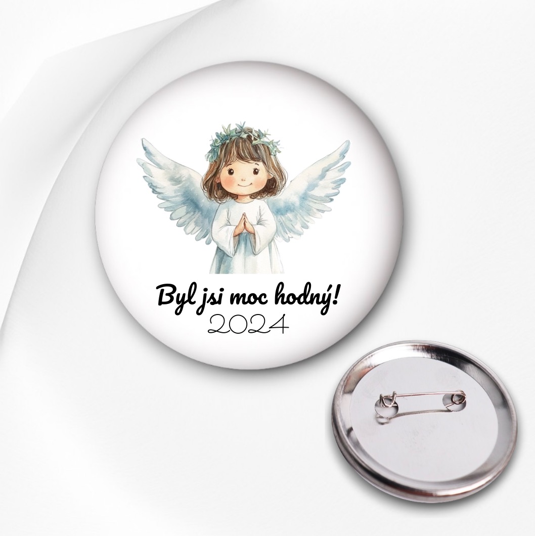 Stylová připínací placka je ideálním doplňkem pro každou mikulášskou oslavu. S veselým motivem anděla přinese tu pravou sváteční atmosféru. Perfektní pro děti, dospělé i organizátory akcí!