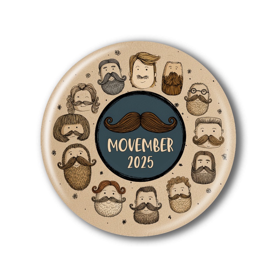 Podpořte Movember stylově! Nabízíme kvalitní připínací placky i magnetky s originálním motivem kníru, které upozorňují na důležitost mužského zdraví. Vyberte si variantu, která vám nejvíce vyhovuje – placku na připnutí nebo magnetku na lednici či tabuli. K dispozici jsou tři oblíbené velikosti: 32 mm, 44 mm a větší 58 mm. Každý kus je vyroben z odolných materiálů, má výrazné barvy a snadno se připíná nebo připevňuje.