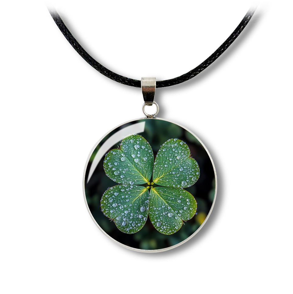 Tento náhrdelník je jednoduchý, ale přesto poutavý šperk se čtyřlístkem, symbolizujícím štěstí. Je ideální jako dárek pro milované nebo pro vlastní ozdobu, pokud hledáte něco, co budete nosit jako talisman štěstí. Kombinace přírodního motivu a elegantní černé šňůrky působí univerzálně a hodí se téměř ke každému stylu oblečení.