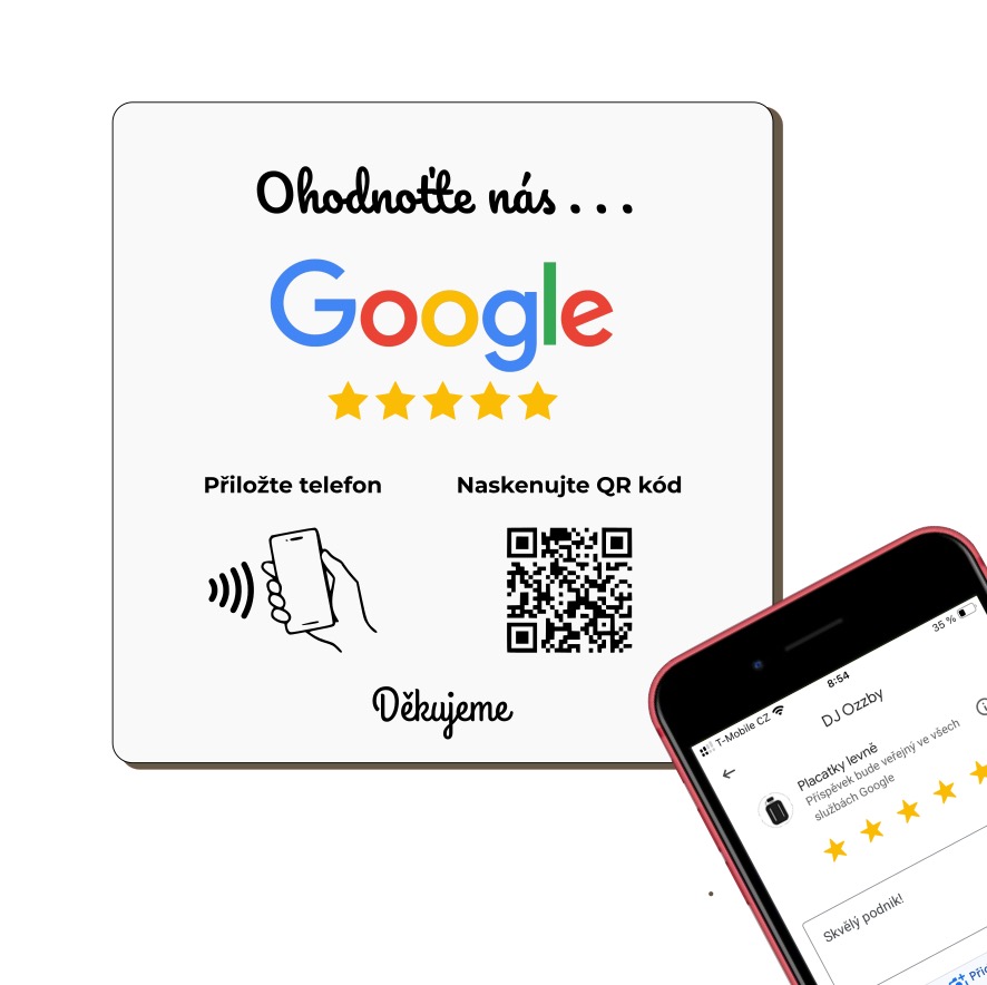 - NFC / QR destička pro Google recenze