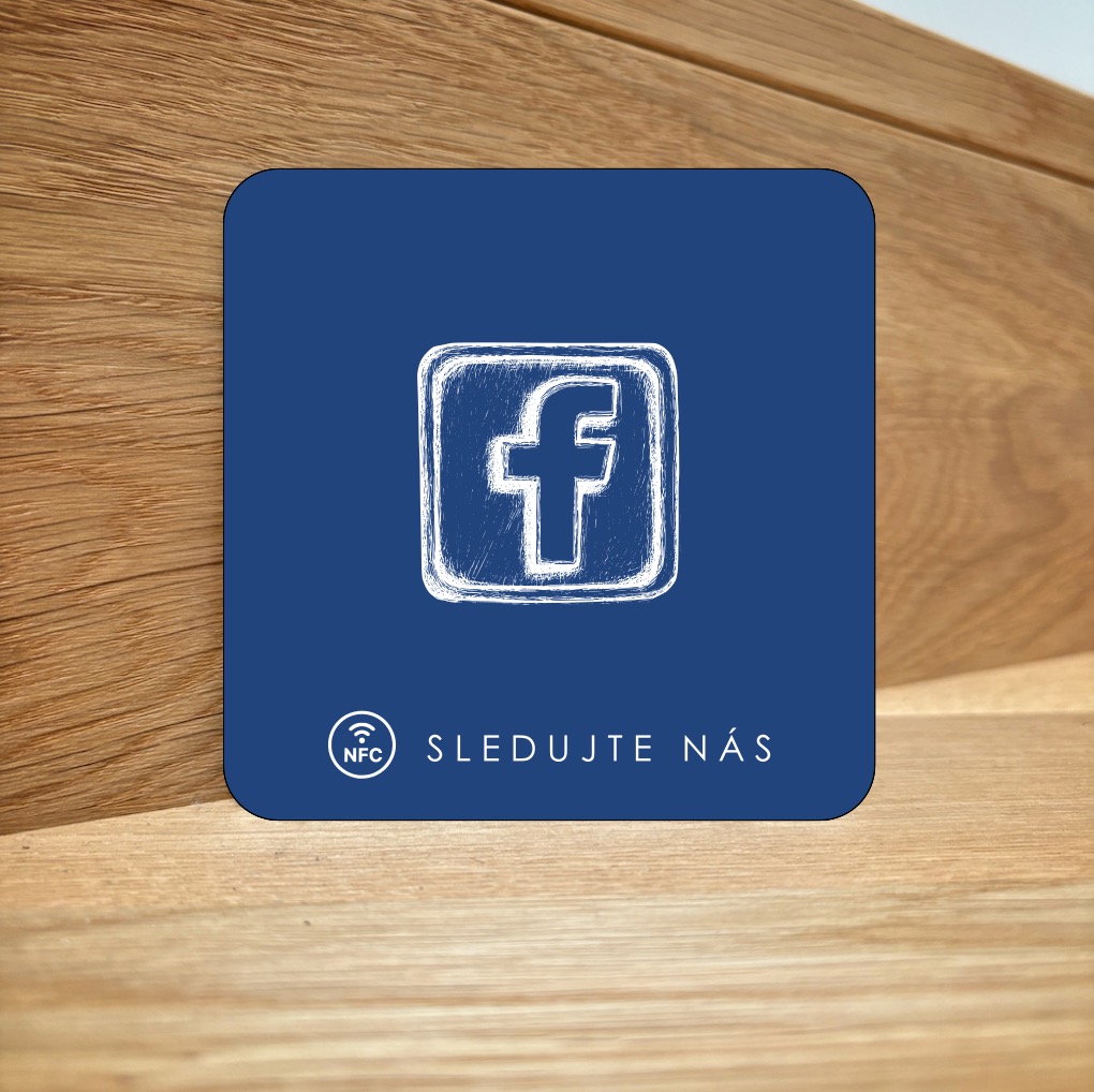 NFC destička funguje velmi jednoduše a zcela bez el. energie. Zákazník se pouhým příložením svého telefonu okamžitě přesměruje na stránku vašeho facebookového profilu.