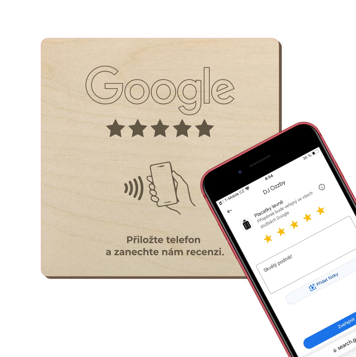 NFC Google destička funguje velmi jednoduše a zcela bez el. energie. Zákazník pouhým příložením svého telefonu se okamžitě přesměruje na stránku vašeho podniku s otevřeným formulářem pro hodnocení, kde může během dvou kliknutí dát 5 hvězdiček, přidat textové hodnocení a třeba i přidat fotografií.