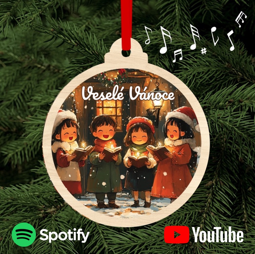 Vytvořte kouzelnou vánoční atmosféru s naší dřevěnou ozdobou s nápisem Veselé Vánoce, která navíc přehrává vánoční koledy. Tato ozdoba obsahuje NFC tag, který vám po přiložení telefonu spustí playlist českých vánočních koled na Spotify nebo Youtube, podle toho, která platforma vám více vyhovuje). Tato ozdoba nepotřebuje žádné napájení ani připojení. Funguje zcela offline a k přehrávání využívá mobilní telefon.