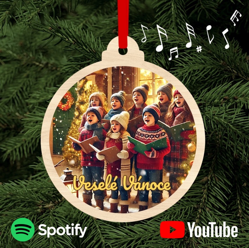 Vytvořte kouzelnou vánoční atmosféru s naší dřevěnou ozdobou s nápisem Veselé Vánoce, která navíc přehrává vánoční koledy. Tato ozdoba obsahuje NFC tag, který vám po přiložení telefonu spustí playlist českých vánočních koled na Spotify nebo Youtube, podle toho, která platforma vám více vyhovuje). Tato ozdoba nepotřebuje žádné napájení ani připojení. Funguje zcela offline a k přehrávání využívá mobilní telefon.