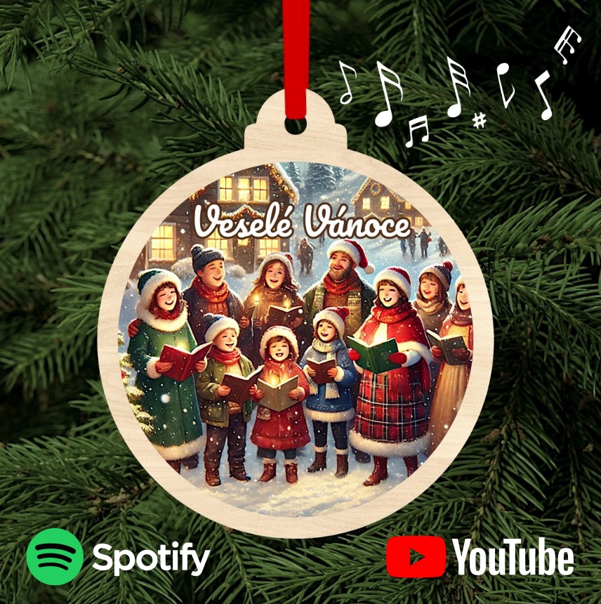 Vytvořte kouzelnou vánoční atmosféru s naší dřevěnou ozdobou s nápisem Veselé Vánoce, která navíc přehrává vánoční koledy. Tato ozdoba obsahuje NFC tag, který vám po přiložení telefonu spustí playlist českých vánočních koled na Spotify nebo Youtube, podle toho, která platforma vám více vyhovuje). Tato ozdoba nepotřebuje žádné napájení ani připojení. Funguje zcela offline a k přehrávání využívá mobilní telefon.