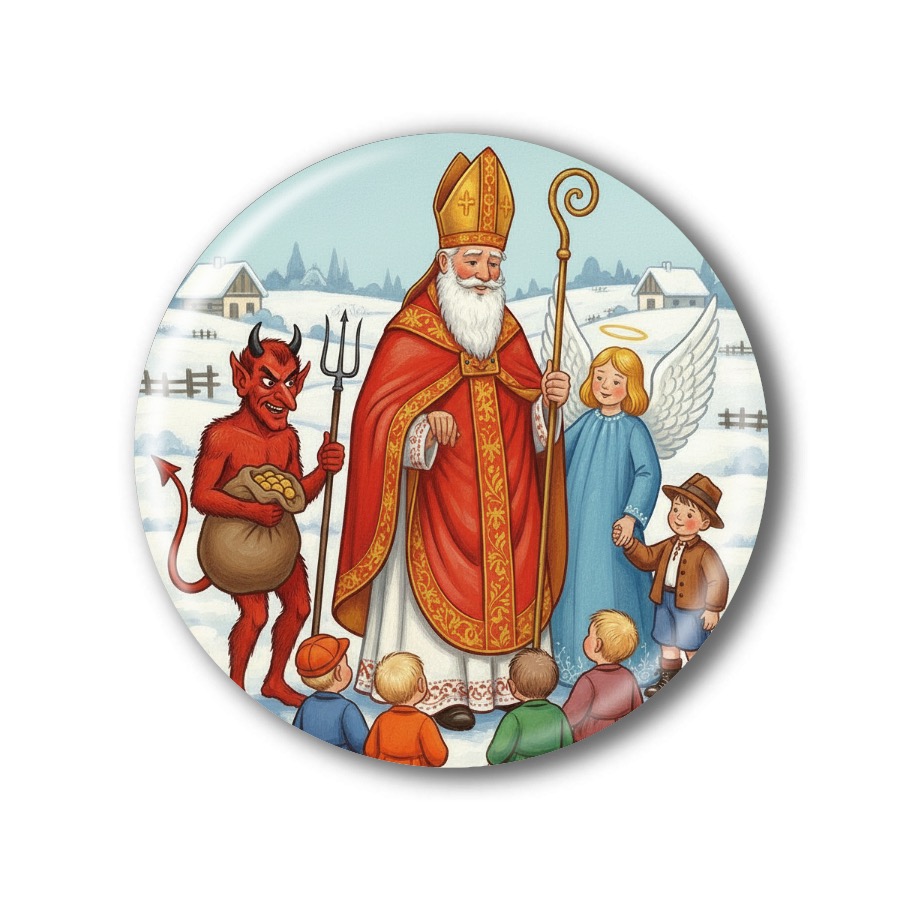 Veselá připínací placka nebo magnetka s mikulášským motivem potěší děti i dospělé! Placky i magnetky jsou vyráběny z kvalitních materiálů, díky čemuž jsou odolné a dlouho vydrží krásné. Nabízíme je v oblíbených velikostech: 44 a 58 mm – stačí si vybrat tu pravou.