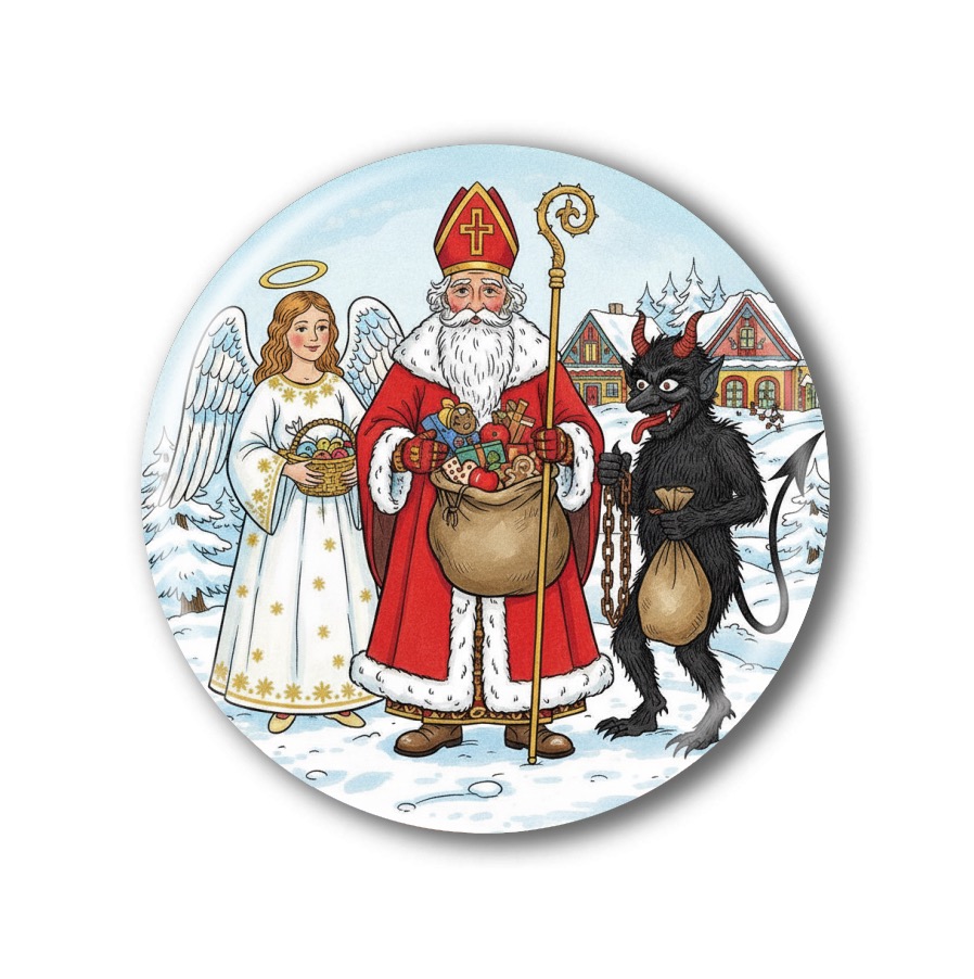 Veselá připínací placka nebo magnetka s mikulášským motivem potěší děti i dospělé! Placky i magnetky jsou vyráběny z kvalitních materiálů, díky čemuž jsou odolné a dlouho vydrží krásné. Nabízíme je v oblíbených velikostech: 44 a 58 mm – stačí si vybrat tu pravou.