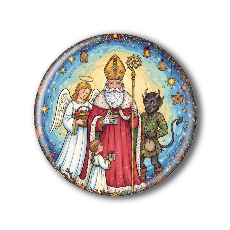 Veselá připínací placka nebo magnetka s mikulášským motivem potěší děti i dospělé! Placky i magnetky jsou vyráběny z kvalitních materiálů, díky čemuž jsou odolné a dlouho vydrží krásné. Nabízíme je v oblíbených velikostech: 44 a 58 mm – stačí si vybrat tu pravou.