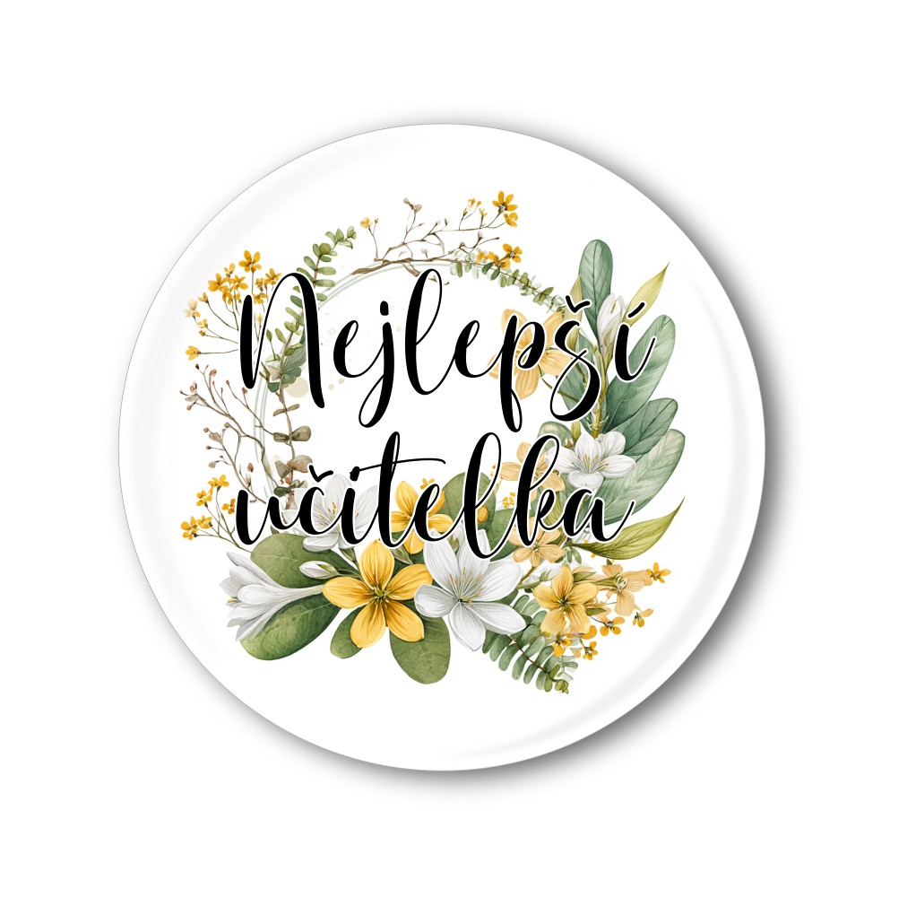 Originální připínací placka s nápisem „Nejlepší učitelka“ je krásným a milým dárkem na rozloučenou na konci školního roku nebo při jiné příležitosti. Placku zdobí jemný květinový věnec, který potěší každou učitelku a rozzáří jí den.