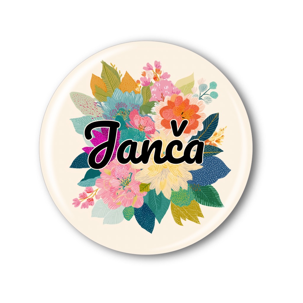 Originální připínací placka se jménem na přání je stylovým a praktickým doplňkem pro každou příležitost. Elegantní květinový motiv v jemných barvách doplňuje jméno dle vašeho výběru, takže placka je ideální například do školy, na tábory, oslavy nebo jako milý dárek pro vaše blízké.
